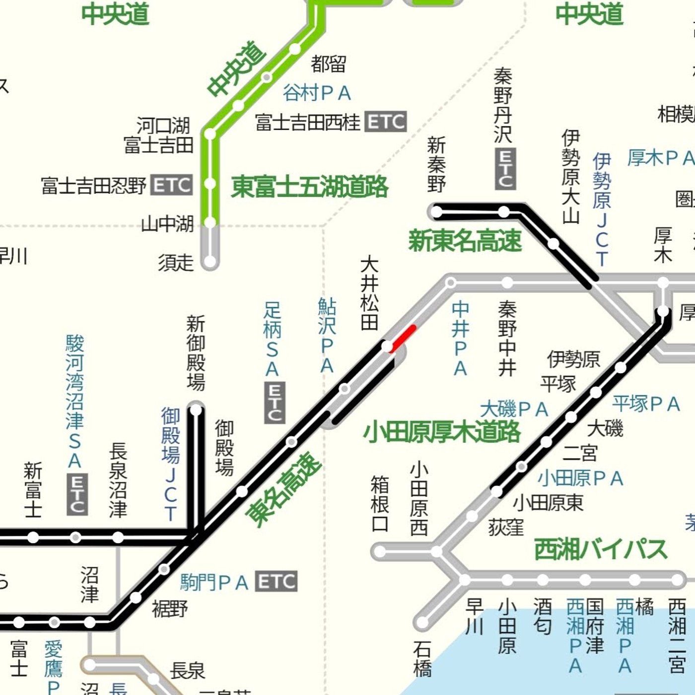ほどなく大井松田ICから東名高速に乗れました。