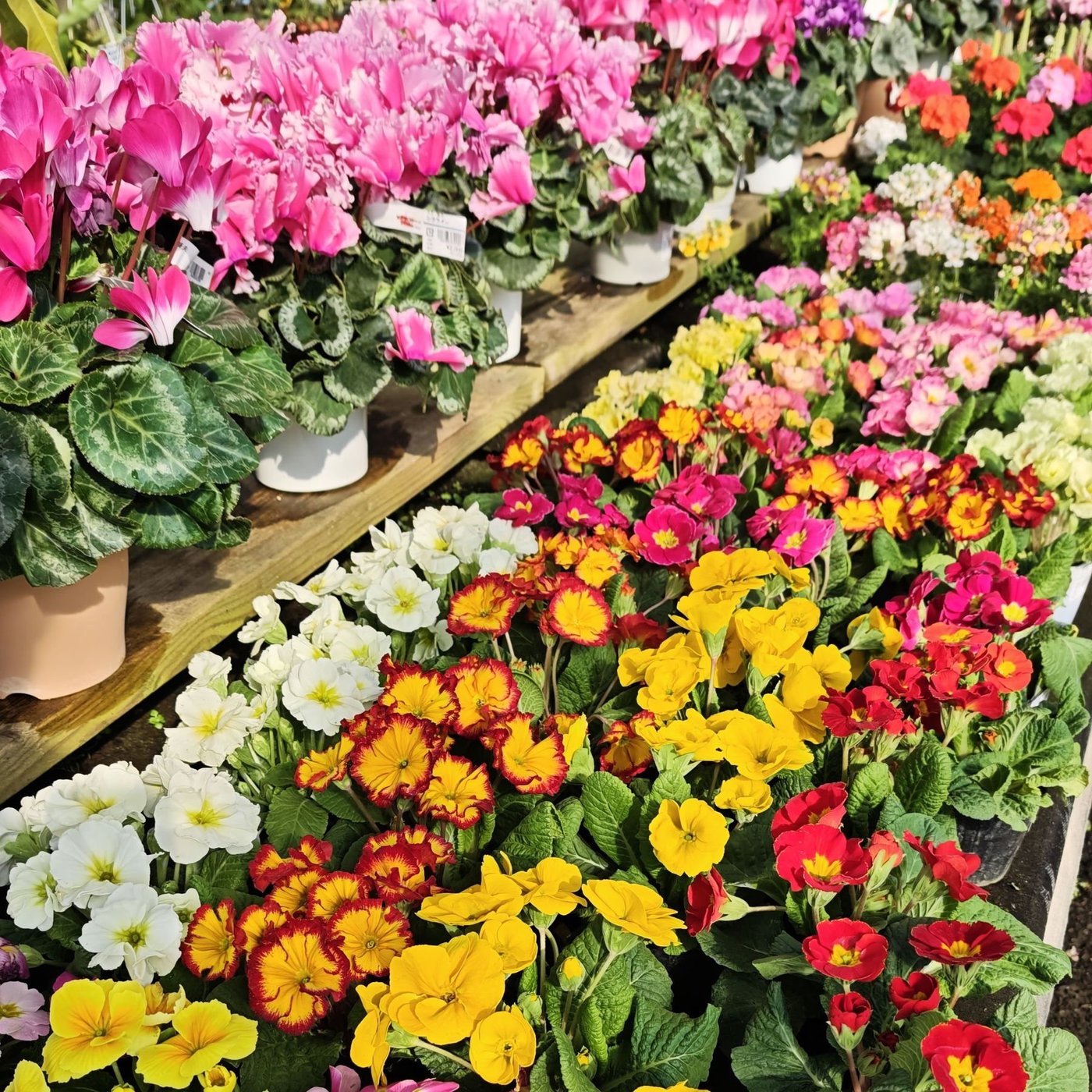 シクラメンをはじめ、何十種類もの大小の鉢植えですね。