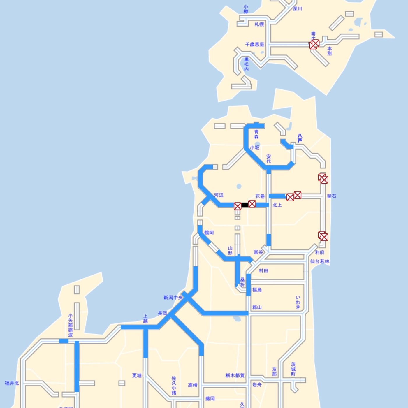 上記JARTICのサイト、高速道路の図表示だけでなく、地図で一覧表示ができるのが秀逸ですね。