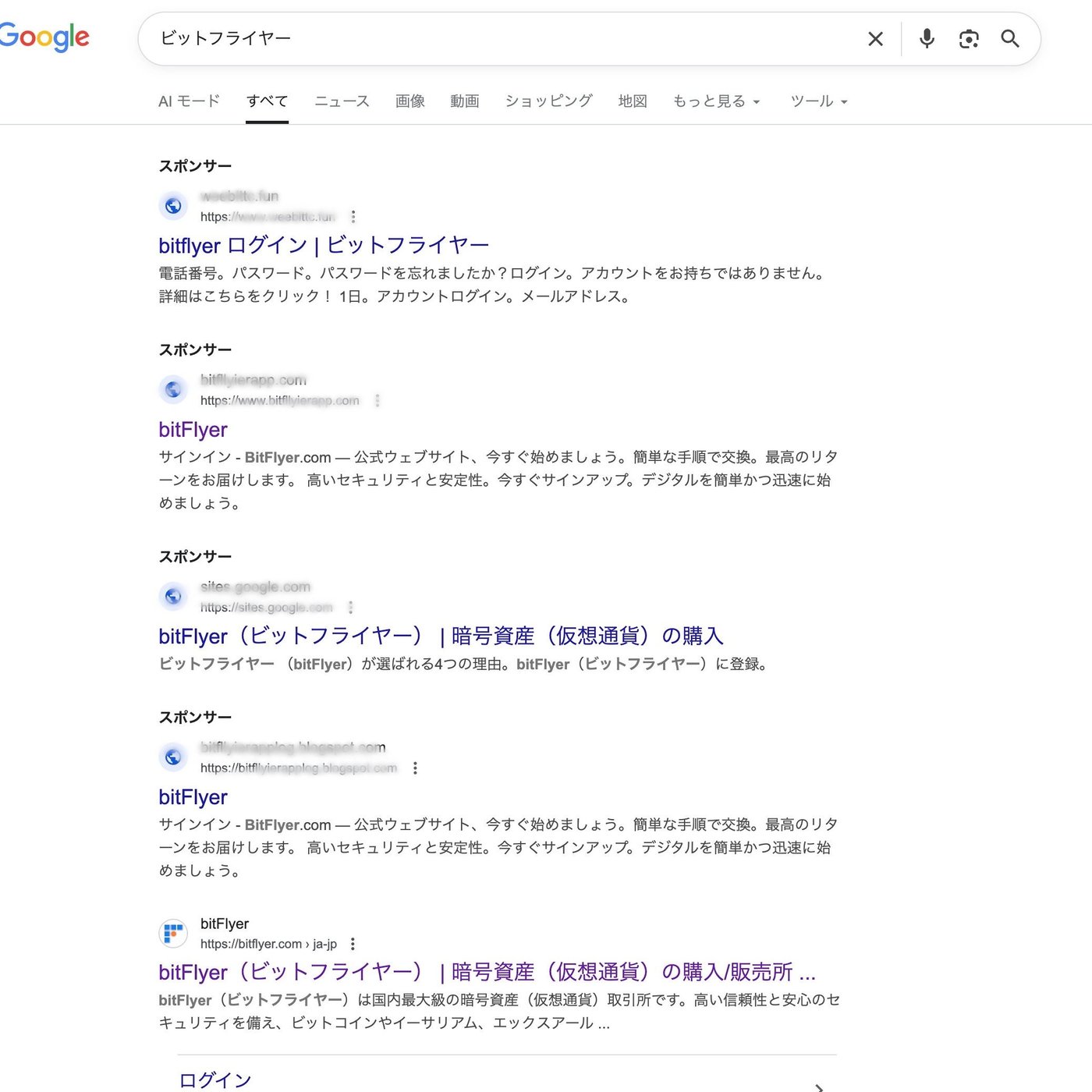 →結果はスポンサーが上部に4エントリー表示されるものの、すべて詐欺サイト
