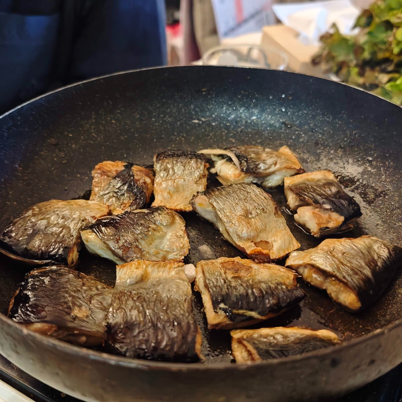 最初は強火であったまったら小さめの中火で、うっすら焦げるくらいにパリッとすると良いかんじ。最後にプライパンが熱いうちに再仕込み醤油でも一回しすれば、そりゃぁもう最高の魚が肴になりますよ。