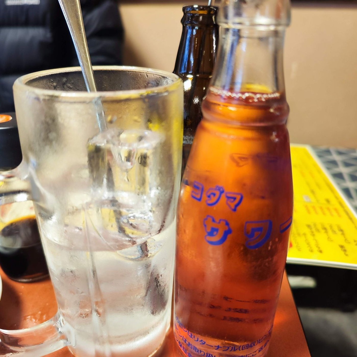 これにこのバイスサワーというジュースを足して飲むと、こういうもんなんですけども、東京の下町の味っていうんですかね。