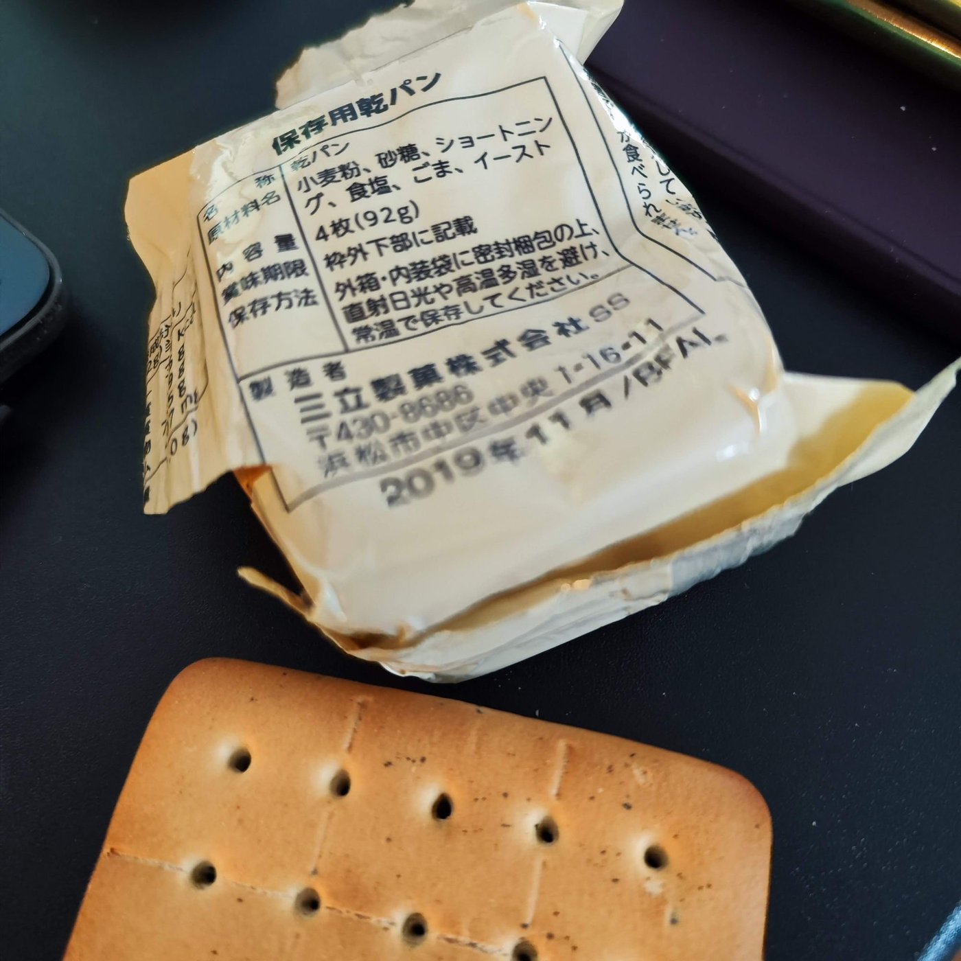 乾パン自体の製法も考え抜かれてることでしょうけど、包装フィルムも相当に良いやつ採用してるんだなと思います。