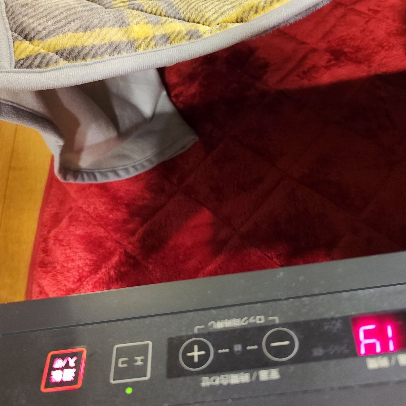 それでこの背の高いダイニングこたつは、今までの低い机に比べたら中の容積は倍くらいになるわけで、同じ能力のこたつヒーターだとあまり暖かくないんじゃないかと予想してました。