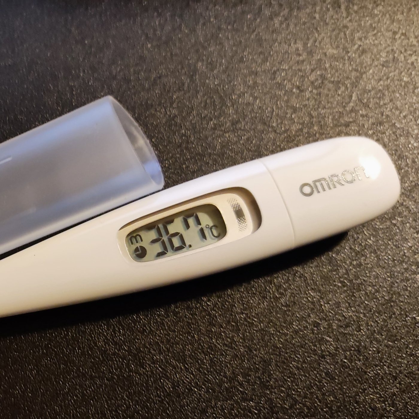 普通の温度計だと、測った結果を見ようと常温状態に持ってきた時点で表示温度が下がってしまうので、体温計仕様に作られた温度計=体温計を使っていました。今日日見たことない人も多いと思います。黒電話状態?