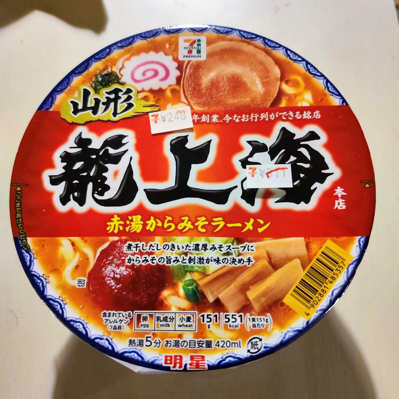 生麺タイプのこの辛味噌ラーメン、スーパーのラインナップの中でも一番高いので有名ですけども、以前からですね、このカップ麺、これはなんとセブンイレブンで発売されてるんですね。