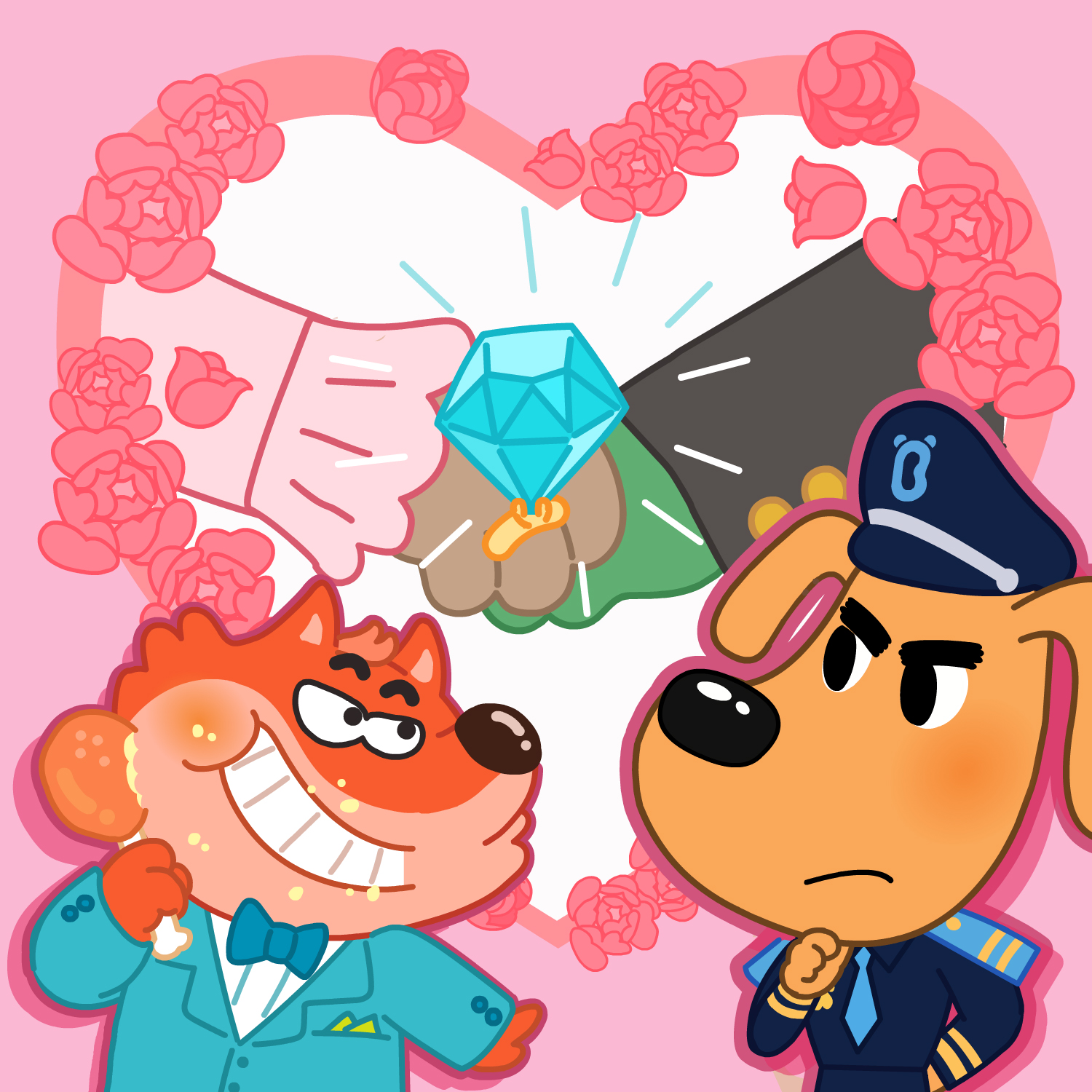 今日はワニさんとウサギちゃんの結婚式です!ラブール警部も結婚式に招待してもらいました。