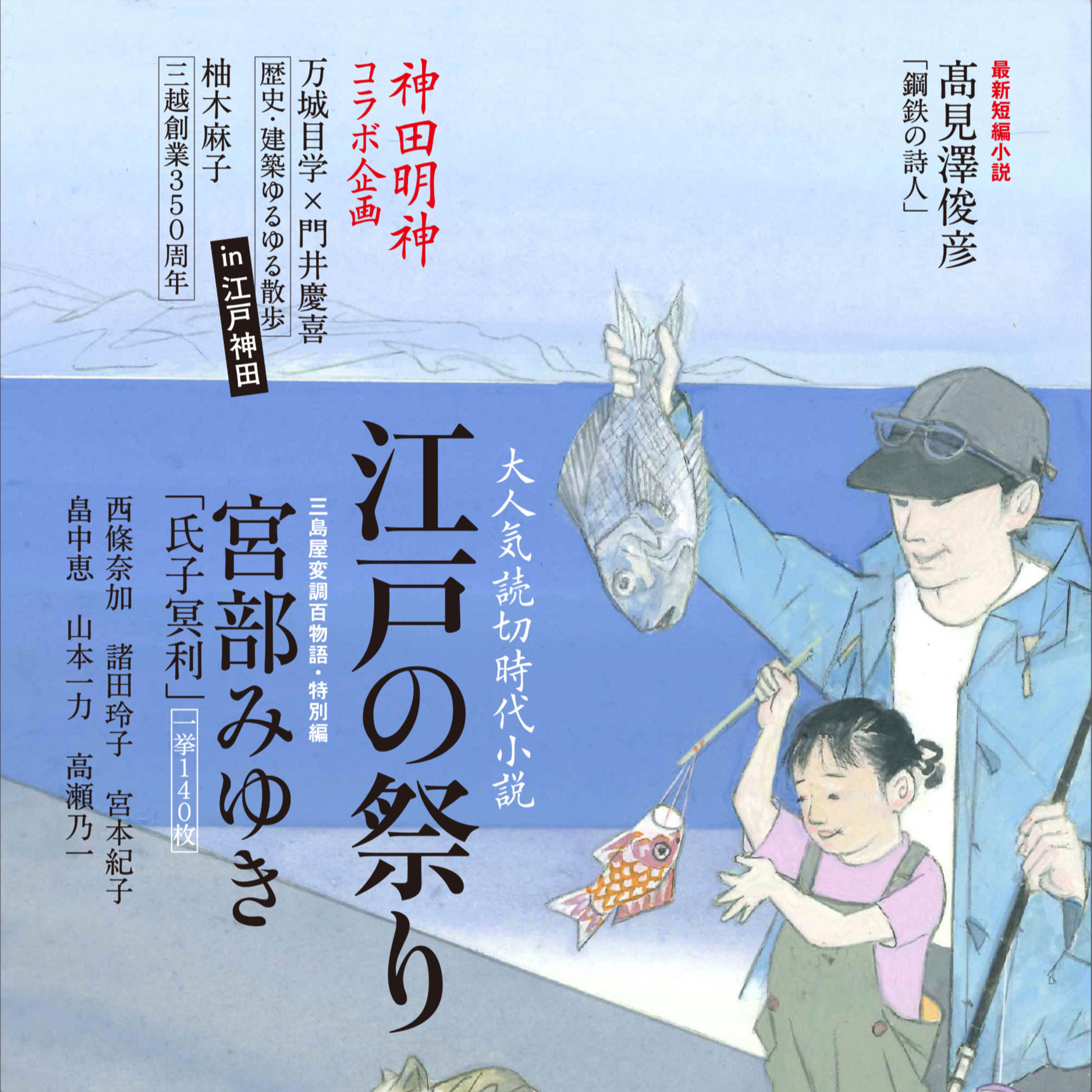 「オール讀物」5月号は豪華コラボ企画がふたつも! まずは、もうすぐやってくる神田祭。コロナ禍で一度見送られたため4年ぶりとなる、江戸っ子待望の神田祭を寿いで、神田明神さん全面協力での特集です。「オール讀物」名物コンビの門井慶喜さんと万城目学さんは江戸総鎮守・神田明神の氏子エリアを巡って近代建築トークを繰り広げ、宮部みゆきさんは大人気シリーズ〈三島屋変調百物語〉の最新作「氏子冥利」で明神様とある氏子の奇妙で深い縁を描き、『特撮家族』で少彦名命を活躍させた髙見澤俊彦さんもスピンオフ「鋼鉄の詩人」で登場。また、今年で創業350周年の老舗百貨店・三越とのコラボ小説第1弾として柚木麻子さん「七階から愛をこめて」では、神田明神氏子でもある〈日本橋三越本店〉を縦横無尽に(時空をも超えて!)駆け巡る物語を楽しんでいただけます。読めば運気も上がるかも!?なお祭りのめでたさに満ちた内容を編集部員がご紹介します。