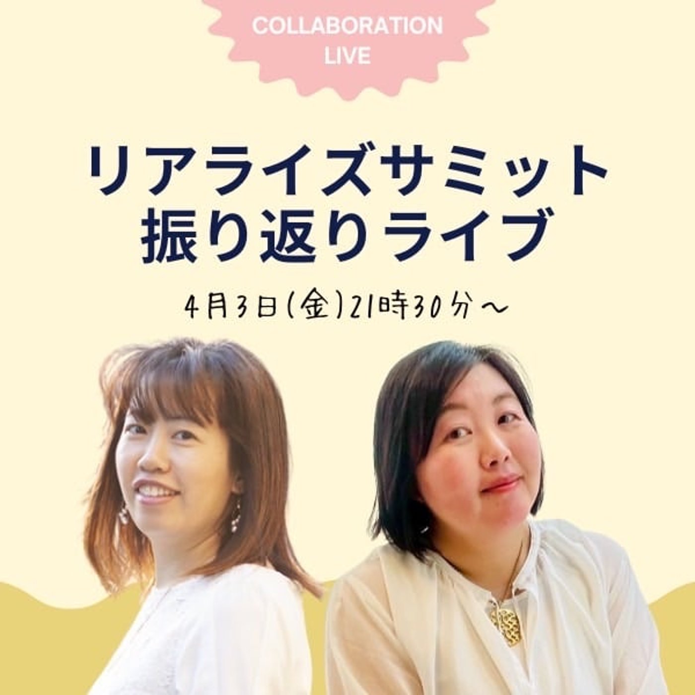 リアライズサミットの振り返りライブということになっております。 サミットの振り返りは、私自身も自分の配信でもさせていただいてるんですけど、改めて主催のすみらさんと一緒に振り返ることで、いろいろ質問とかもしていただくと思うので、その中で新たな自分の発見の言語化などができるんじゃないかなというふうに思ってます。