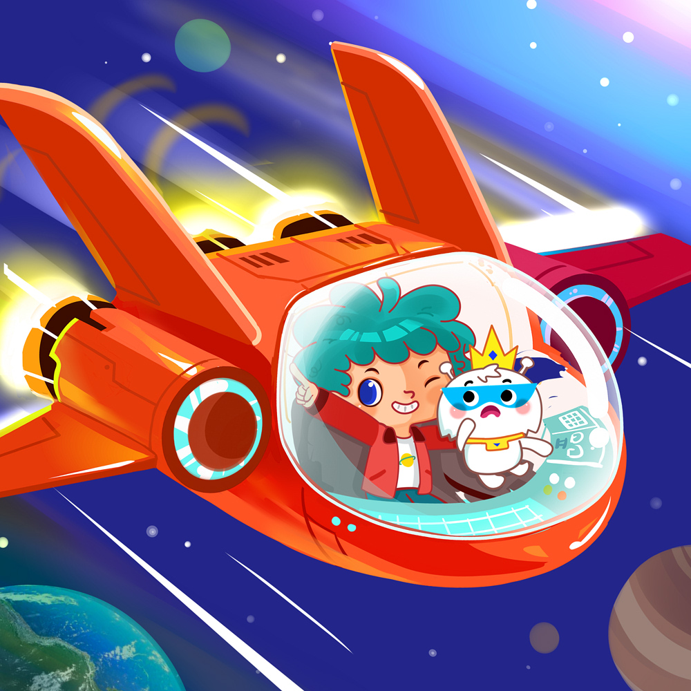 紺色の夜空に、星が宝石のようにキラキラと煌めいています。その星空の下、一つの宇宙船が飛び立とうとしています。