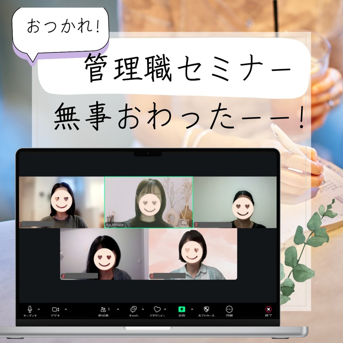 10時半から12時まで、90分の自分主催の女性管理職セミナーを開いておりました。