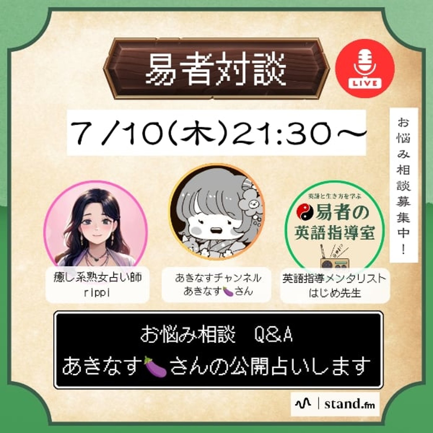 よかったらまた易者タイムで参加してください。