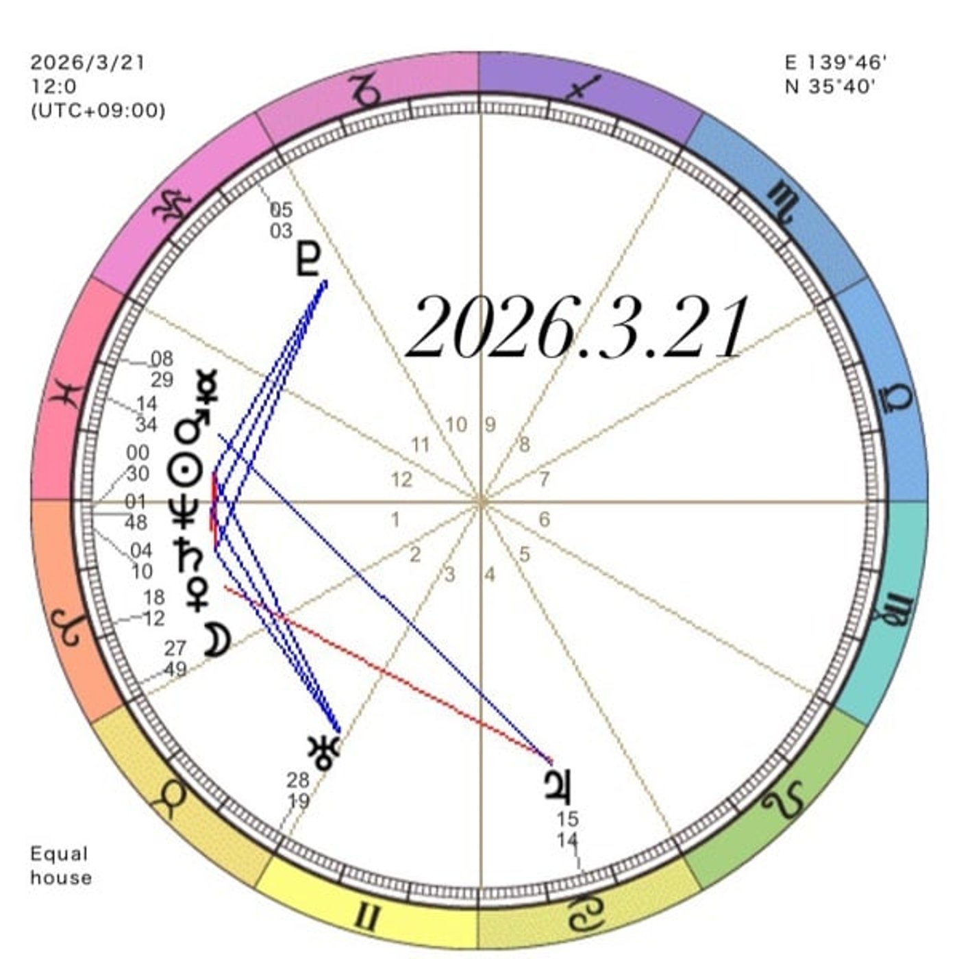 2日半でどんどん移動するので、月はもうね、今日の午後にはね、2つ目の星座、オウシに移動する予定です。