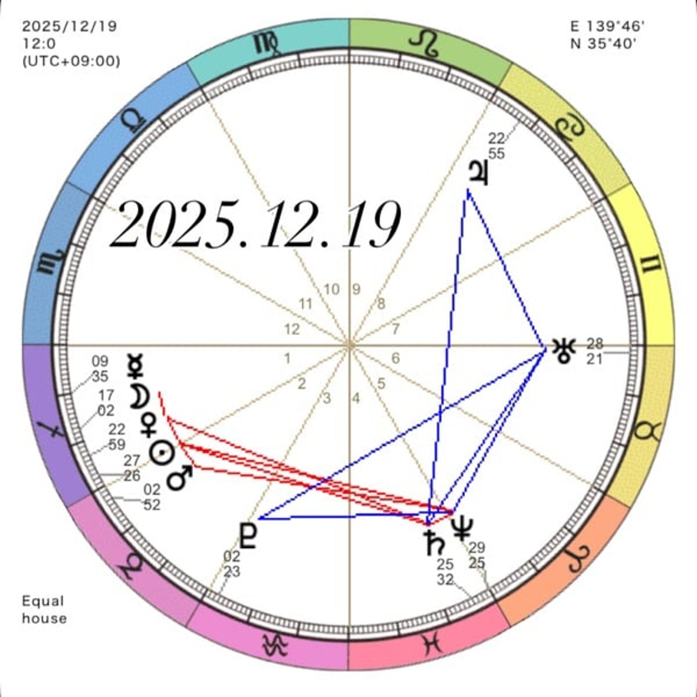 はい、で今日の星を見に行きたいと思います。今日は12月の19日金曜日です。 そして月は昨日もすでにイテザに入っていて、今日もイテザタイムが続いています。
