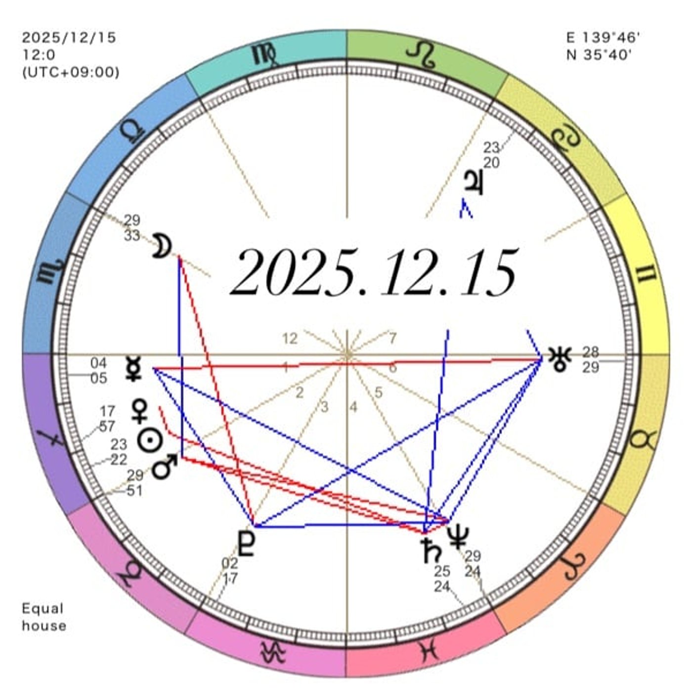 今日は12月の15日、月曜日です。 そしてですね、月は昨日に引き続き、今まだ天秤座にいますが、今日の午後