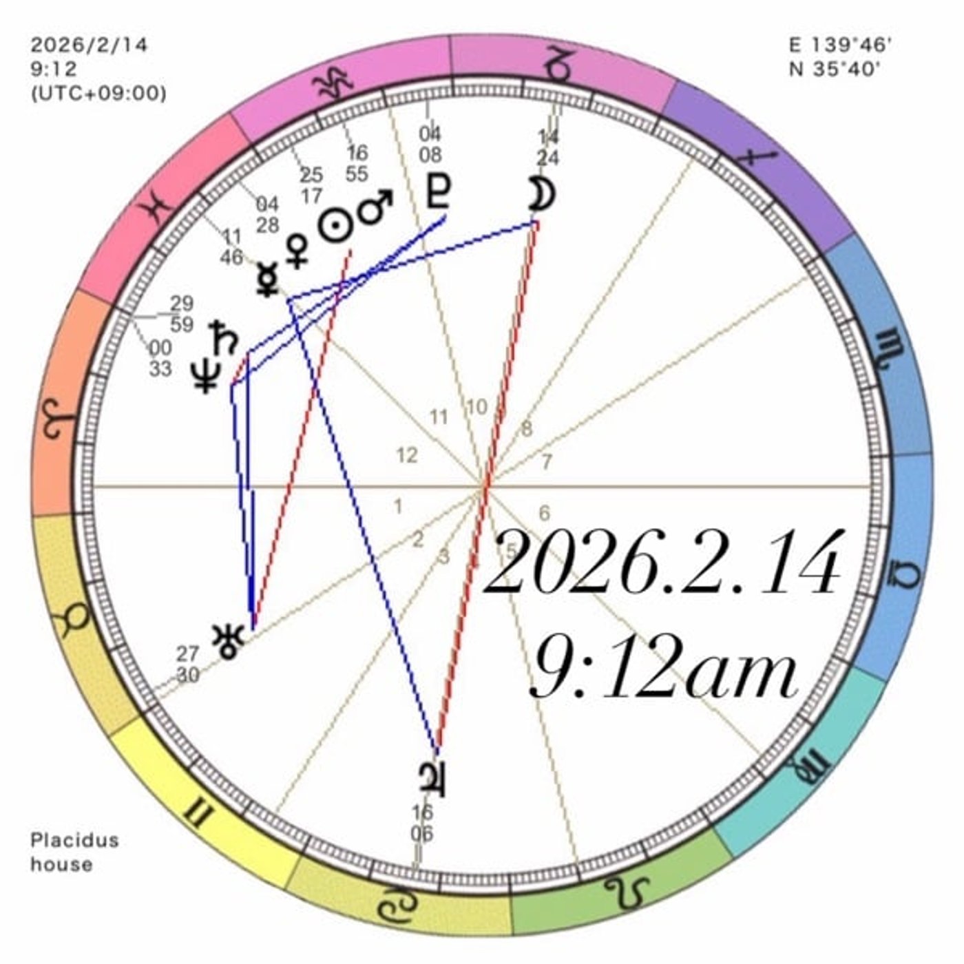 今日のサムネは、その度性がオフィス座に入る9時12分ちょうどのホロスコープを出しました。