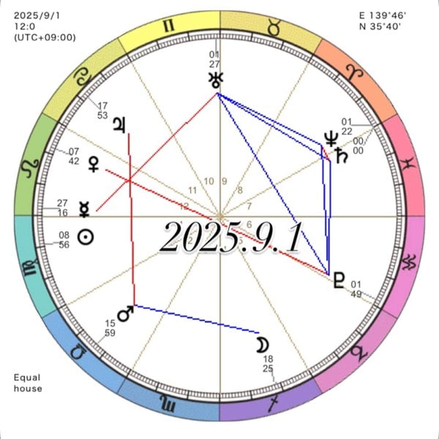 そしてですね、月ですが、月は、えーとね、今日はイテザにいます。 月というのは、2日半かけてね、12星座をぐるっと一周します。