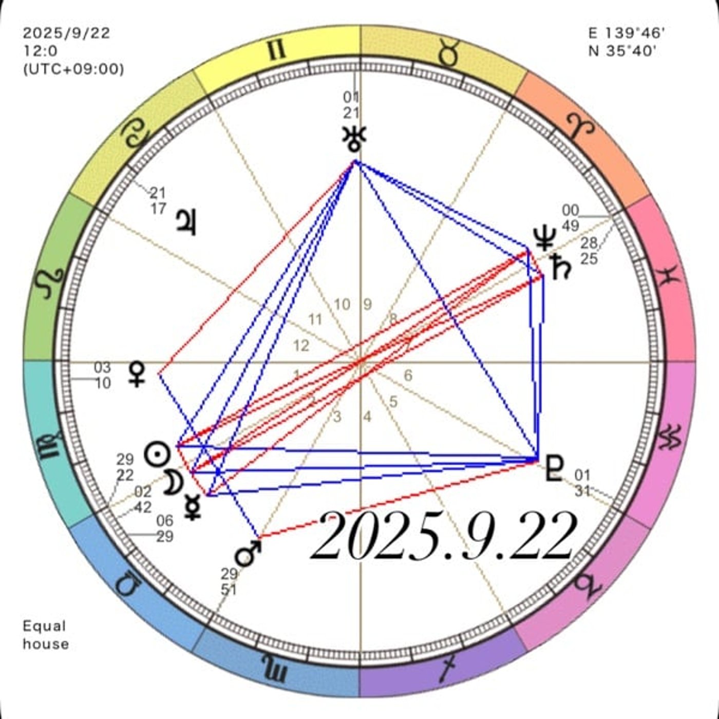 これはね、人間関係の星でもあります。 そして今日のホロスコープを見ると、風星座にたくさんの星が集まってます。