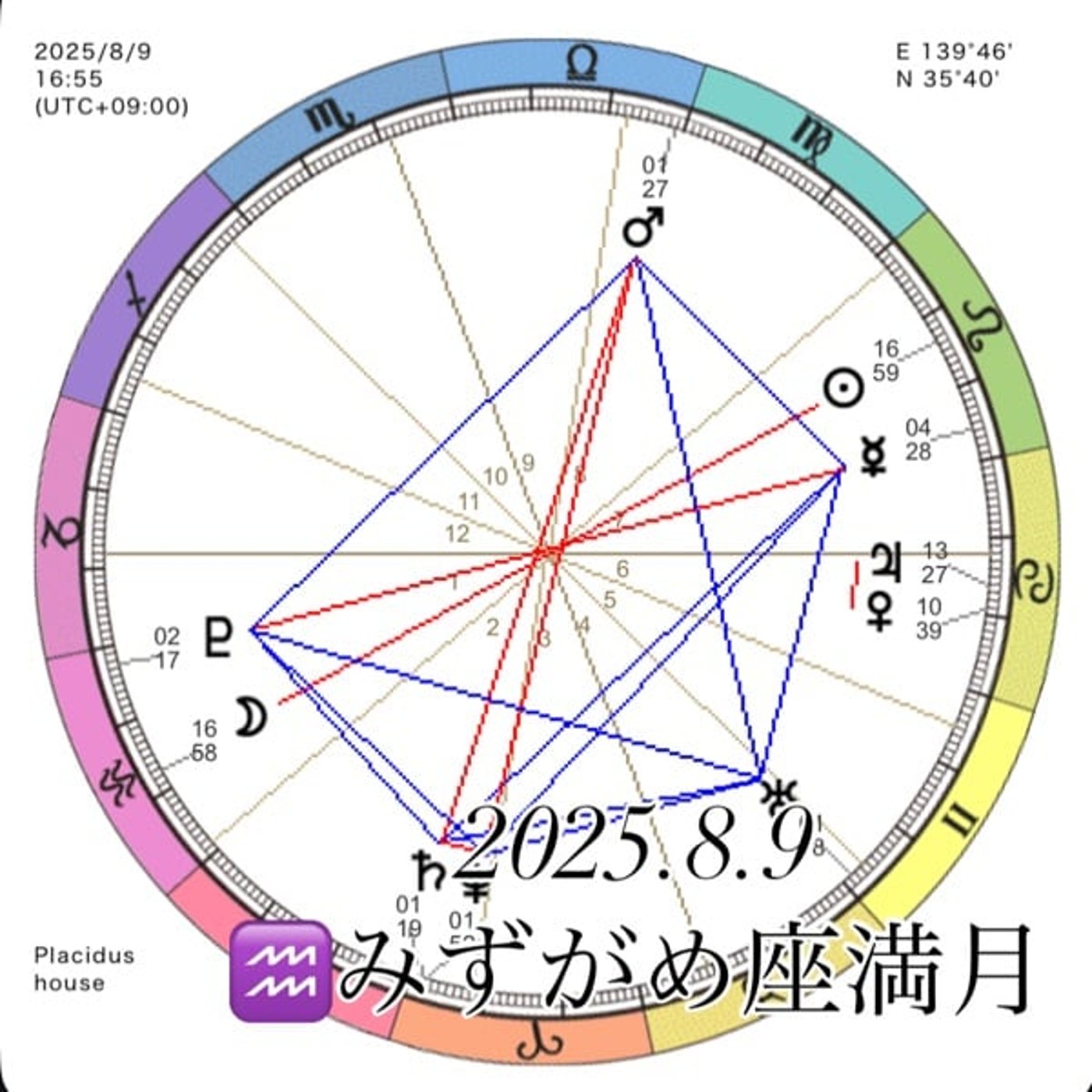 そしてですね、今日貼っているサムネはね、ジャスト満月の時間のホロスコープの図です。