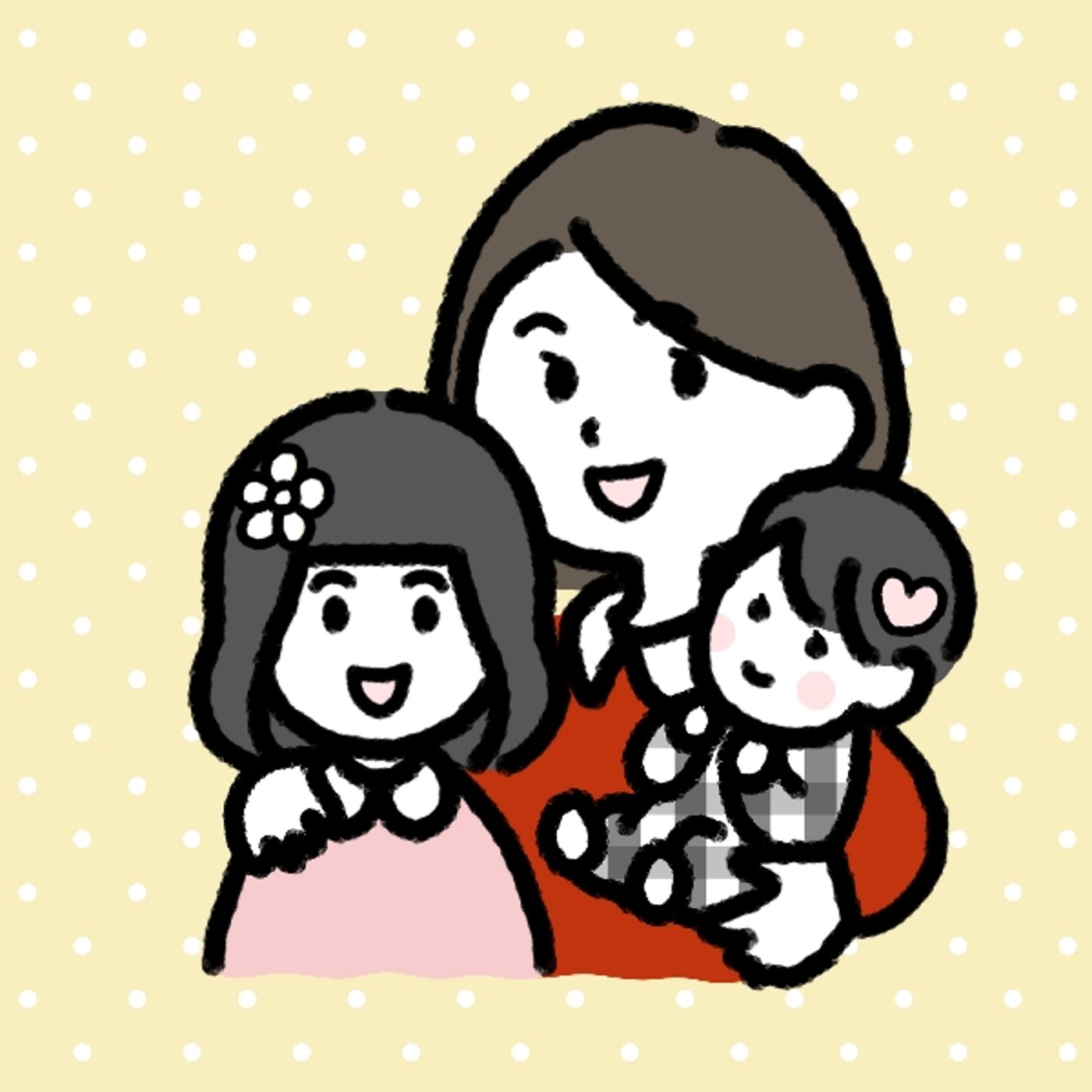 アイコンの方は、このページにも表示されているかもしれないのですが、背景が黄色と白のドット柄で、母娘3人が写っている感じになります。