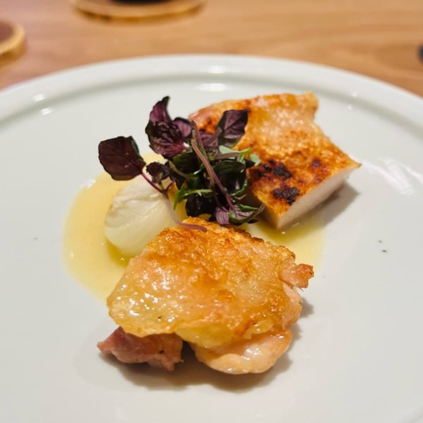先ほどもお話ししたひよどりを使った炭火焼きですね。この辺りで炭火を使っているからも炭火焼き料理で、でもトノトのソースなので、ちょっと何料理っていう定義が難しいなと思いながら、