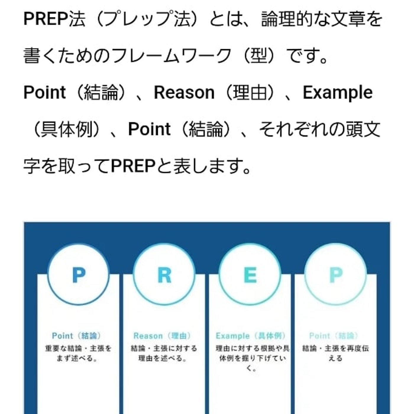プレップ法の内容なんですけど、最初に結論を述べる。