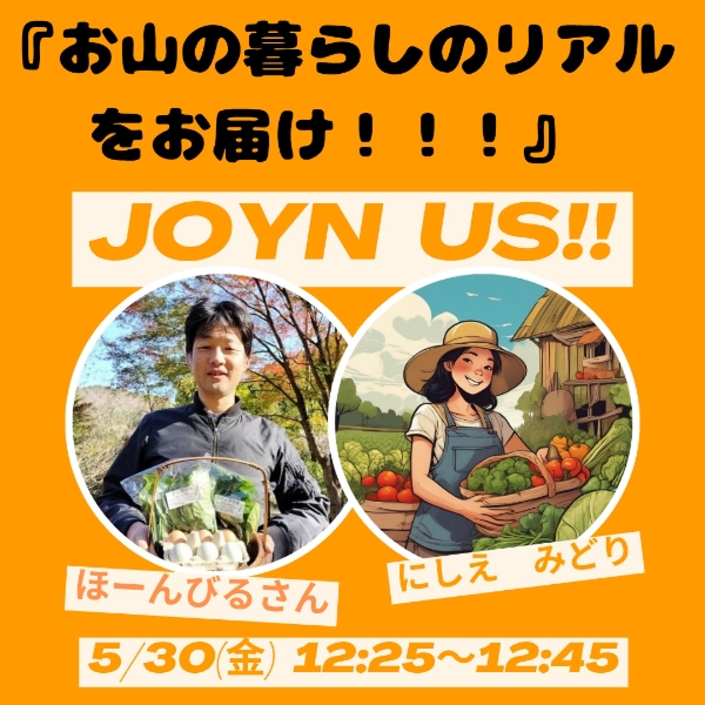 今日のテーマは、本日お昼の12時25分から45分お山の農園ほーんびるさんとstand.fmでコラボライブします。