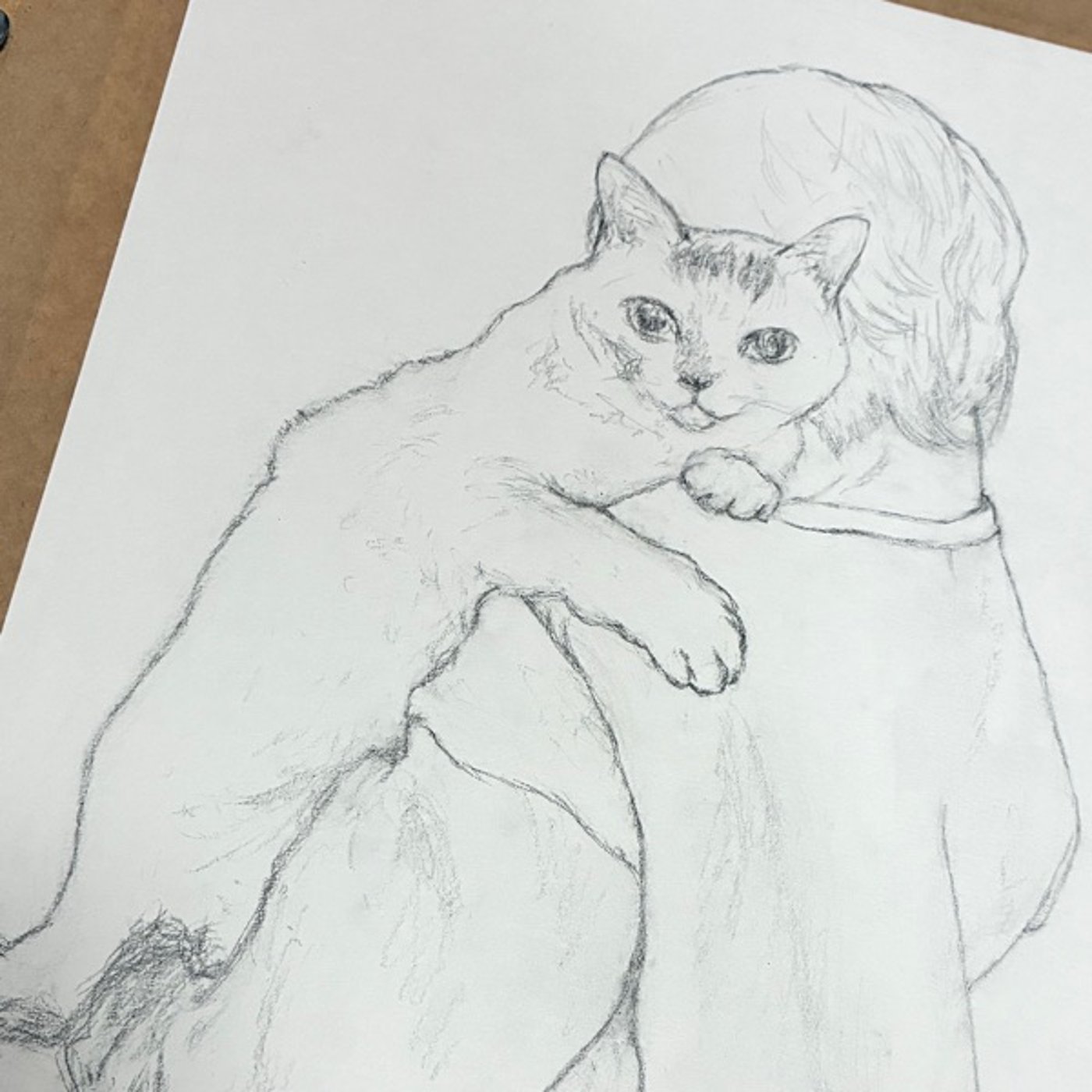 その後は、マルシェの新商品見本の絵を描いていて。うちの子🐱がモデルであることや、久しぶりに少し大きい用紙に描けることで、楽しいが止まらず。