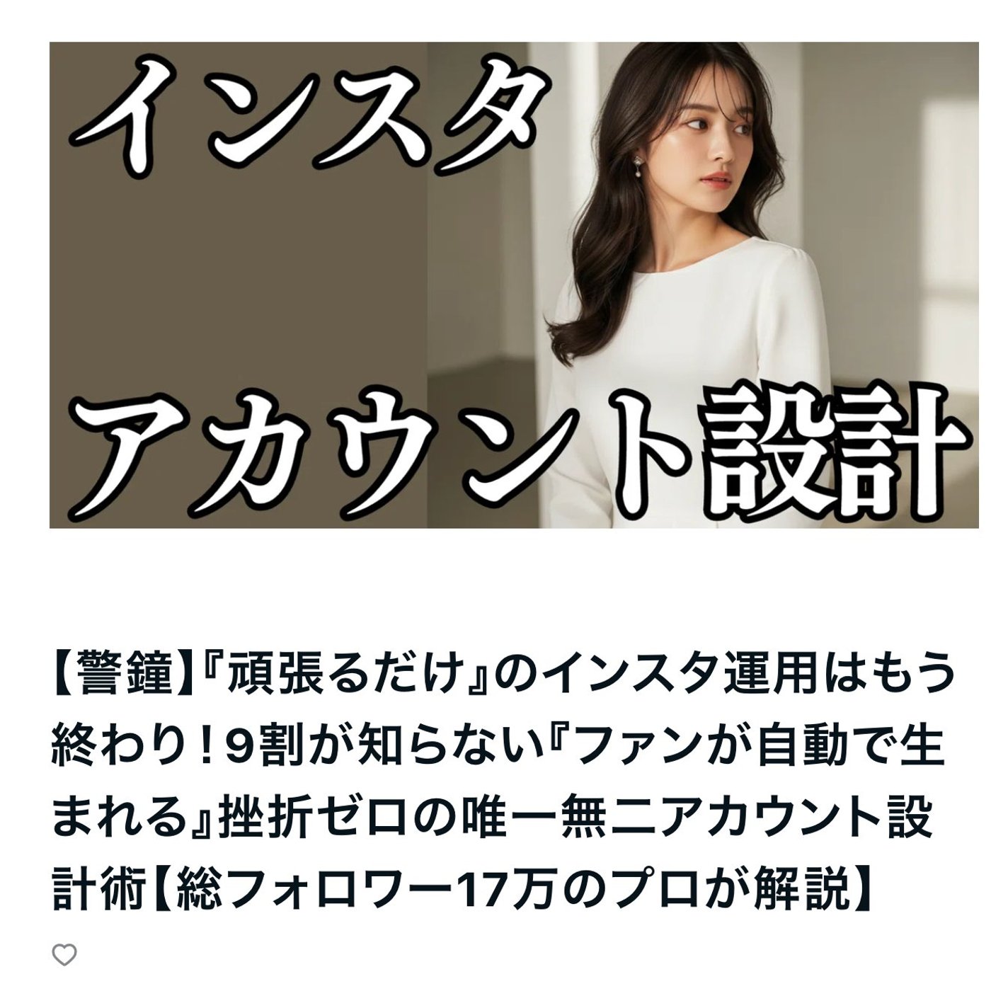 インスタで成果を出すための、アカウント設計ですね。特に何をどう発信すればいいのとか、設計って言われても、みたいに感じているあなたと一緒に、なんかこう、革新に迫れたらなと思ってます。