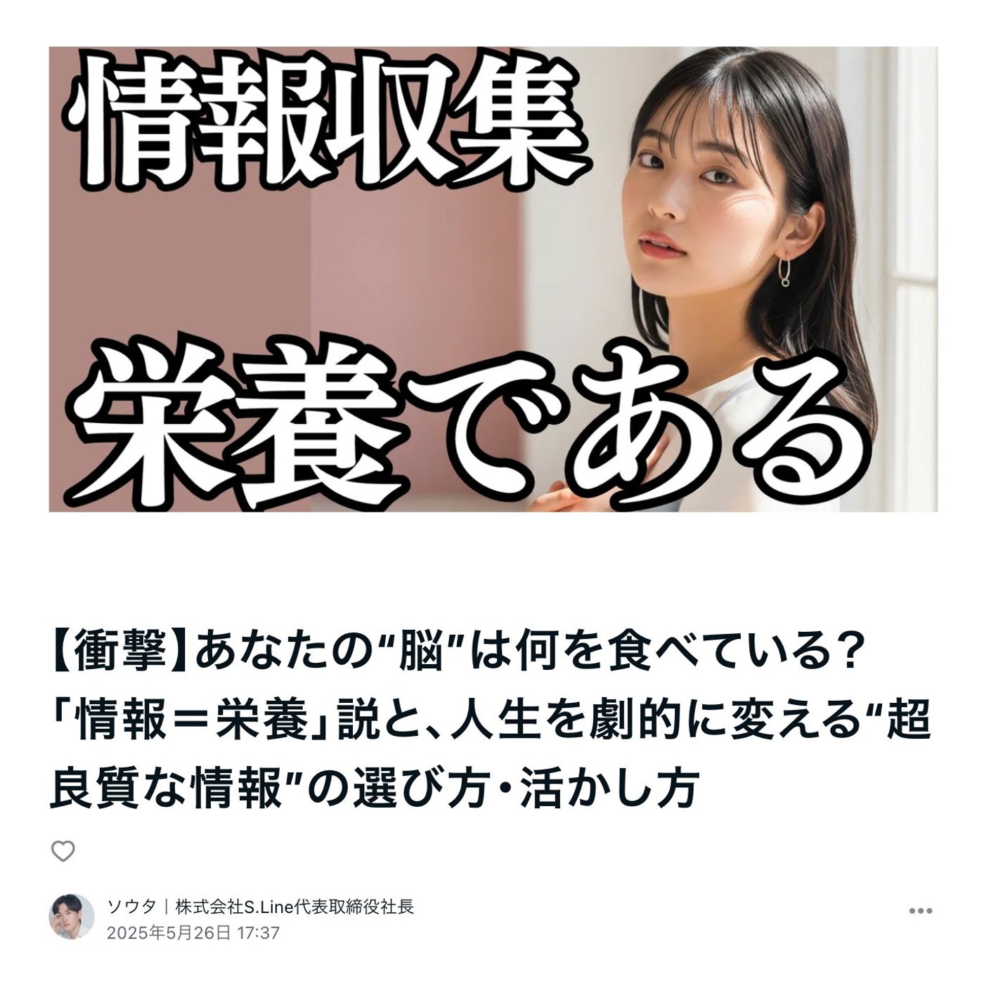 そしてその質の高い情報栄養を、じゃあどう選んで、どう生かすのか、その辺り本質に迫っていければと思います。