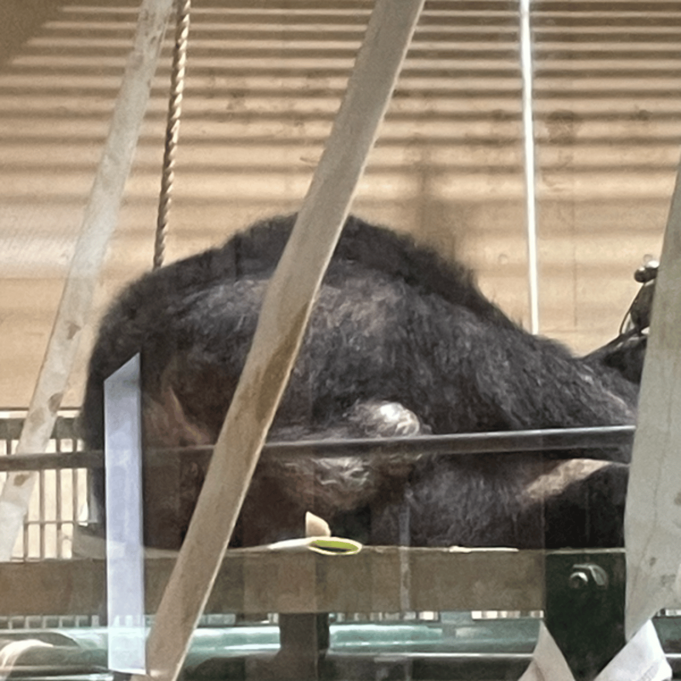 背景は、朝日山動物園のチンパンジーのでっかい金玉です。