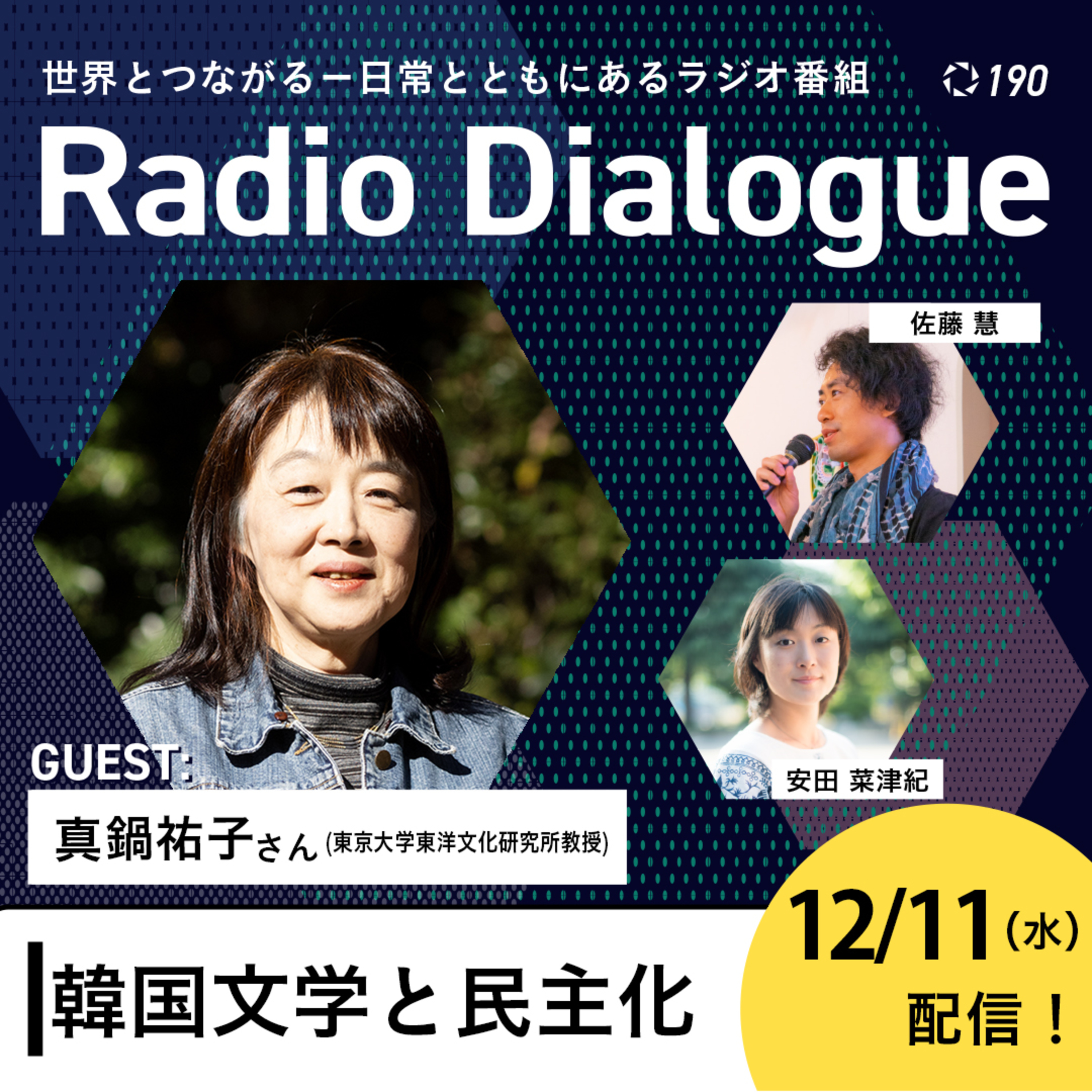 2024年12月3日夜、韓国の尹錫悦(ユン・ソギョル)大統領による「非常戒厳」は、市民や国会議員の迅速な行動により数時間後には解除されました。尹大統領の弾劾など、今後の動きに注目が集まりますが、こうした権力の暴走に対する市民の行動の背景には、過去の凄惨な歴史がありました。「済州4・3事件」や「光州民主化運動」など、日本の植民地支配と地続きの構造は、多くの文学作品にも描かれています。今回は東京大学東洋文化研究所教授の真鍋祐子さんをゲストに、韓国の民主化運動の歴史や、ノーベル文学賞を受賞したハン・ガン氏の作品などについて伺っていきます。