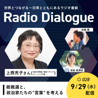 「”募ってはいるが募集はしていない”、”総合的・俯瞰的に判断した”…答弁とも言えない答弁や、事実上のゼロ回答など、かみ合わない言葉が閣僚、官僚から相次いで飛び交ってきました。論点ずらしの答弁などを「ご飯論法」として広め、国会審議を街頭で上映する「国会パブリックビューイング」の代表である、法政大学教授、上西充子さんをゲストにお迎えし、今回の総裁選や政治家たちの「言葉」について考えます。