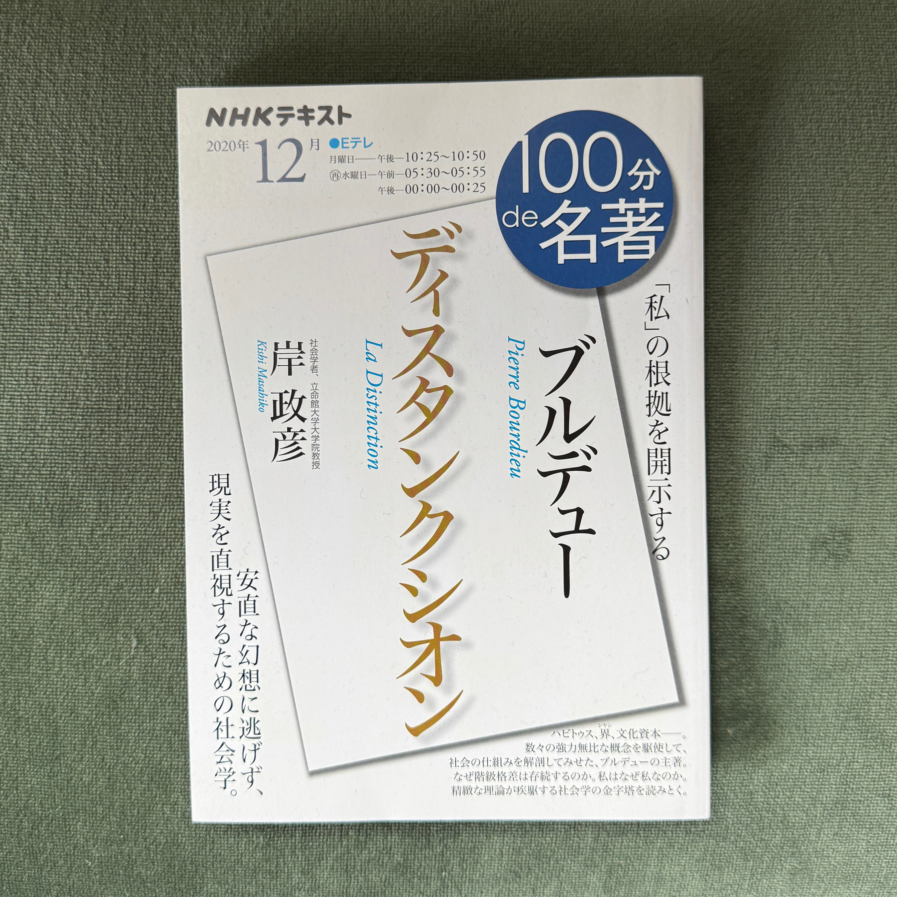 ブルデュー『ディスタンクシオン』 2020年12月 (NHK100分de名著)