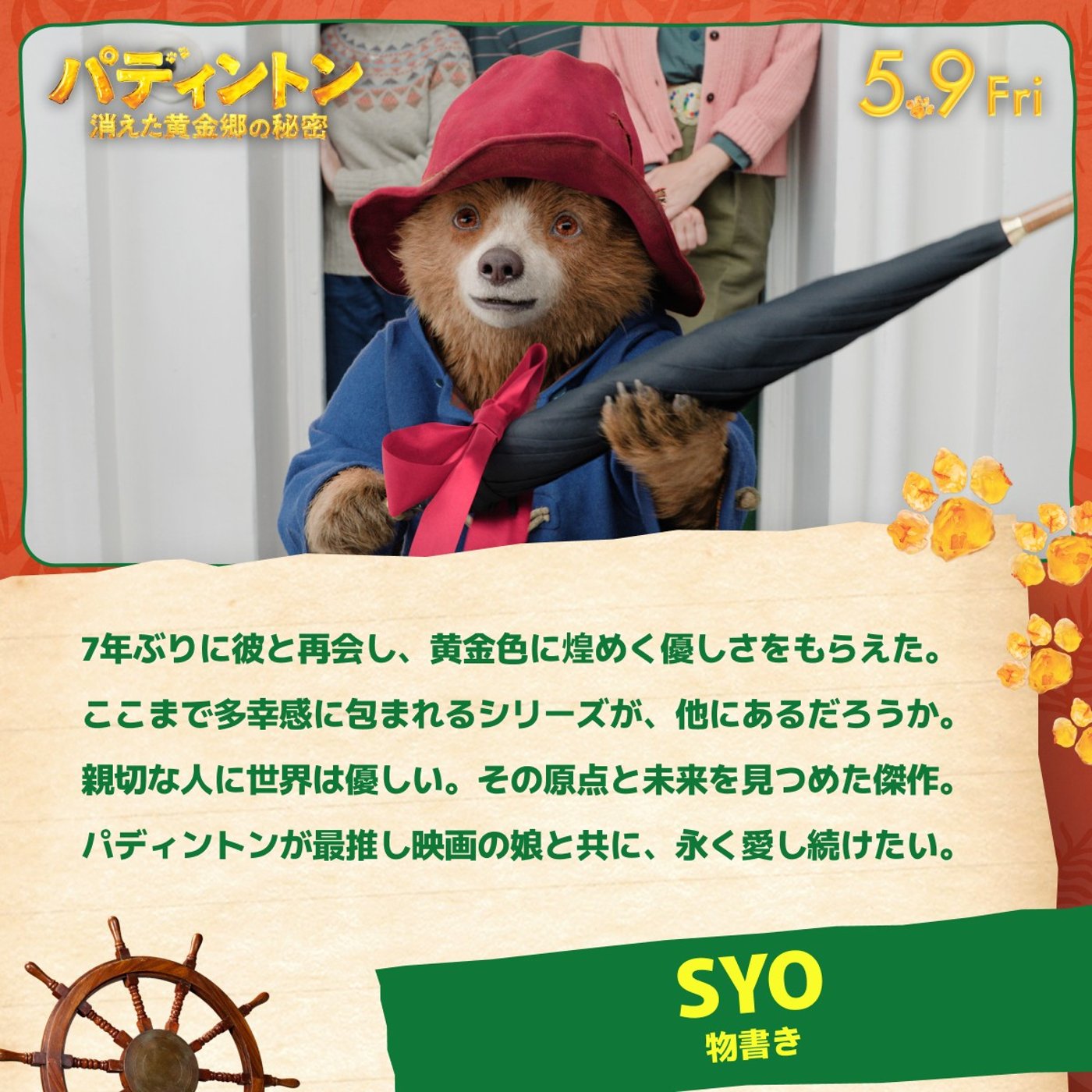 『パディントン 消えた黄金郷の秘密』をご紹介。