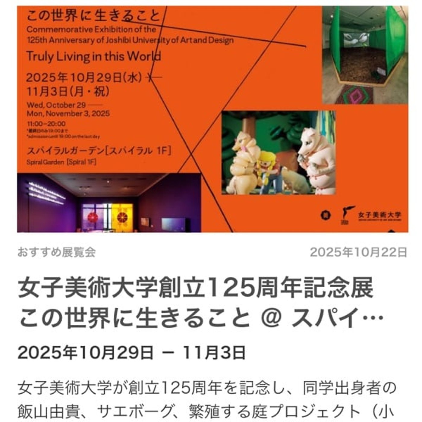 娘の大学の卒業生で活躍していらっしゃる方々の展示とか、ビデオでの活動の様子を見ることができたり、そんなイベントがあったからなんですね。