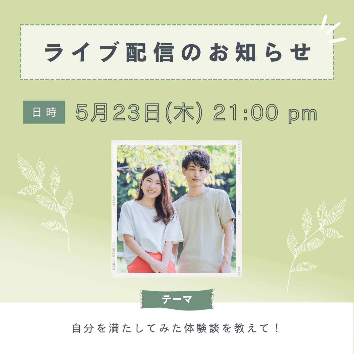 なので、ライブ配信の日時は先ほどの通り、5月23日木曜日の夜9時からなんですけど、
