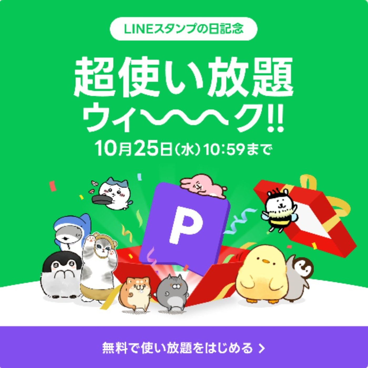 昨日から始まったLINEスタンプ超使い放題ウィークがすごいので、情報共有します。