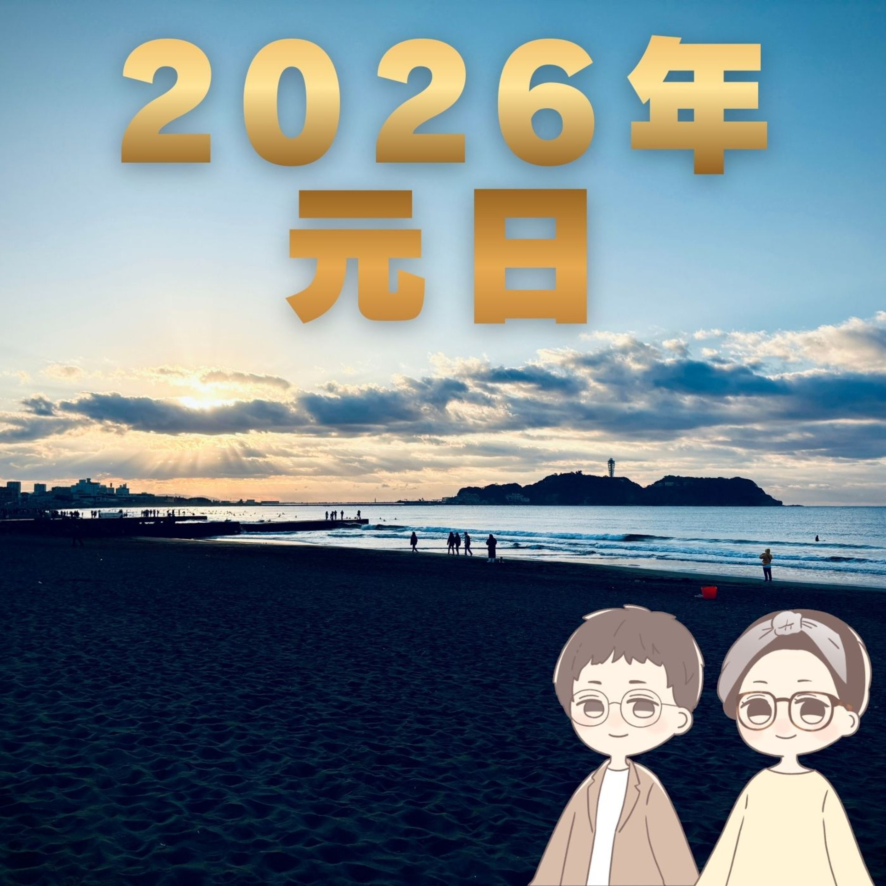 相方の花さんと一緒に江の島が見える海岸で初日の出を見に行ってきました。