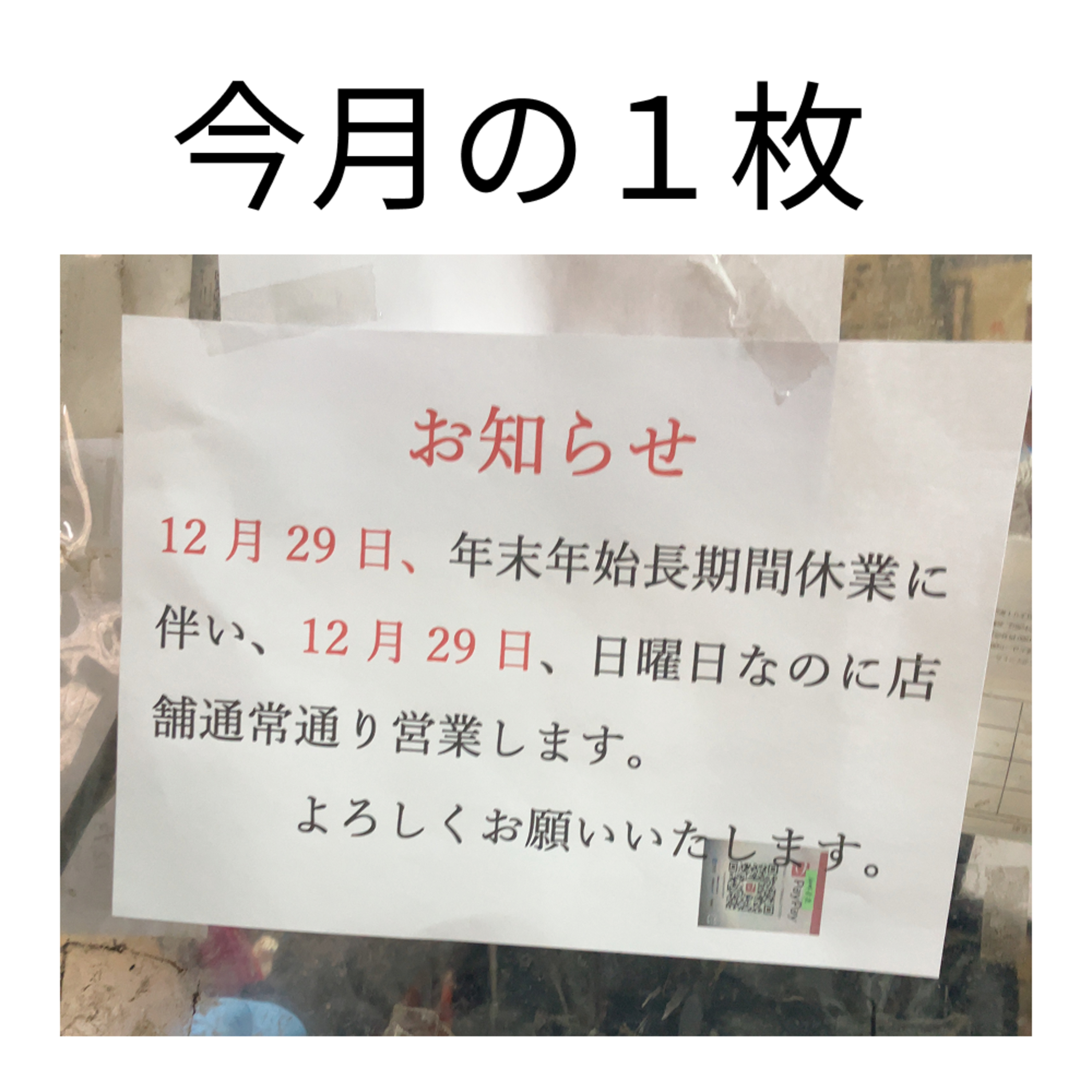 一生懸命年末年始の定休日日曜日なんだけど