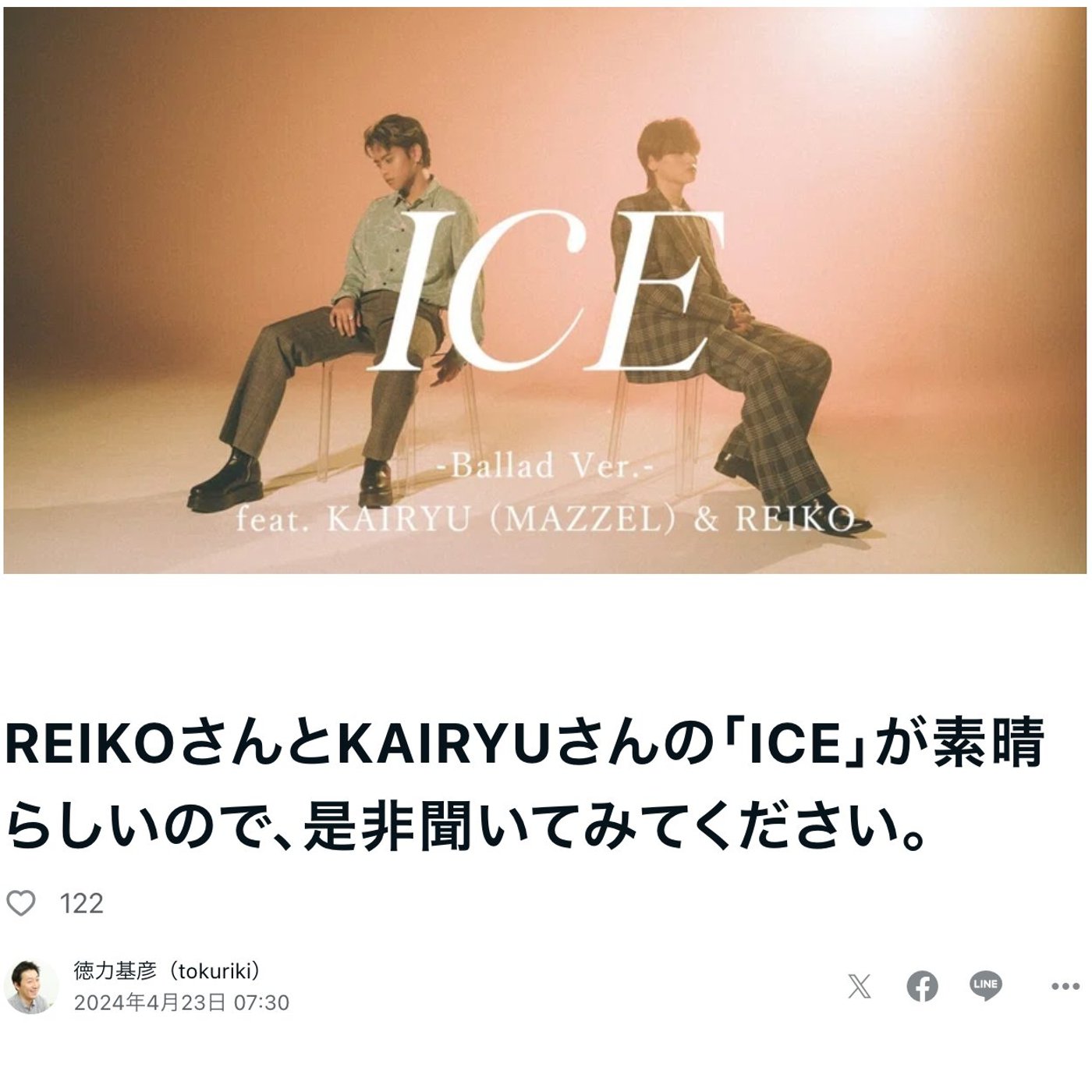 REIKOさんとMARZELのKAIRYUさんとのコラボのバラードですね。