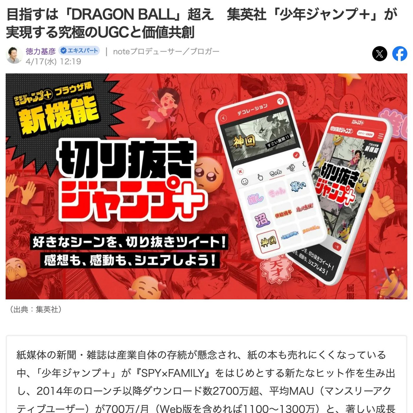 で、切り抜きジャンププラスですね。で、切り抜きジャンププラスはその、これねもう仕組みができてしまえばやっぱこういうのあった方がいいよねって話なんですけど、これね。