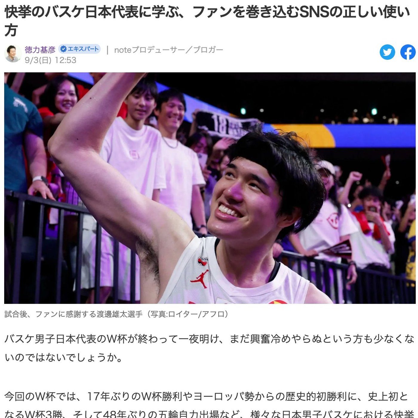でもそれぐらい、日本はバスケで世界で活躍するのを苦しんでいたのが、今回3勝もあげてくれたということで、これはちょっと何か記事を書かないといけないと思ってたのもあるんですけど、やっぱりこの渡辺裕太選手のSNS投稿が本当に大きかったよなと思ったので、ちょっとYahoo!に記事を書いてみましたのでご紹介です。