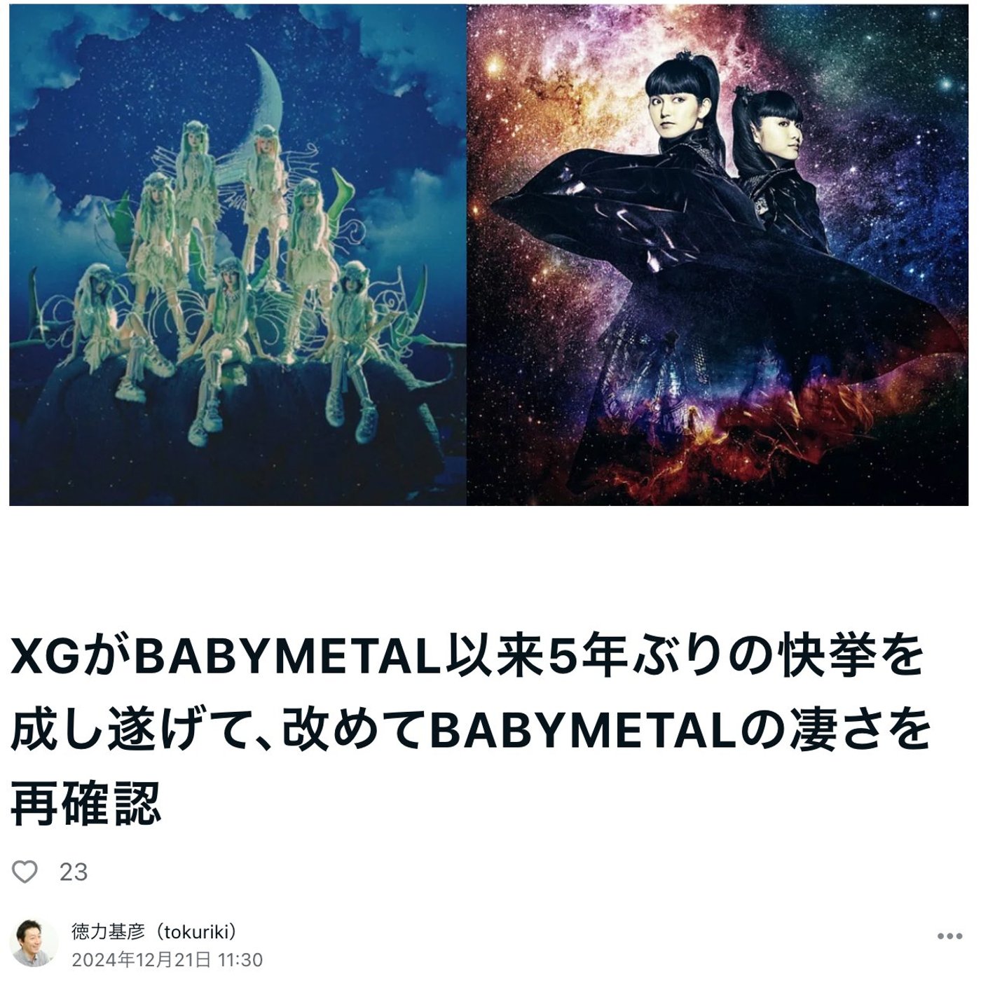 2019年のベビーメタルのメタルギャラクシー以来のチャートに。