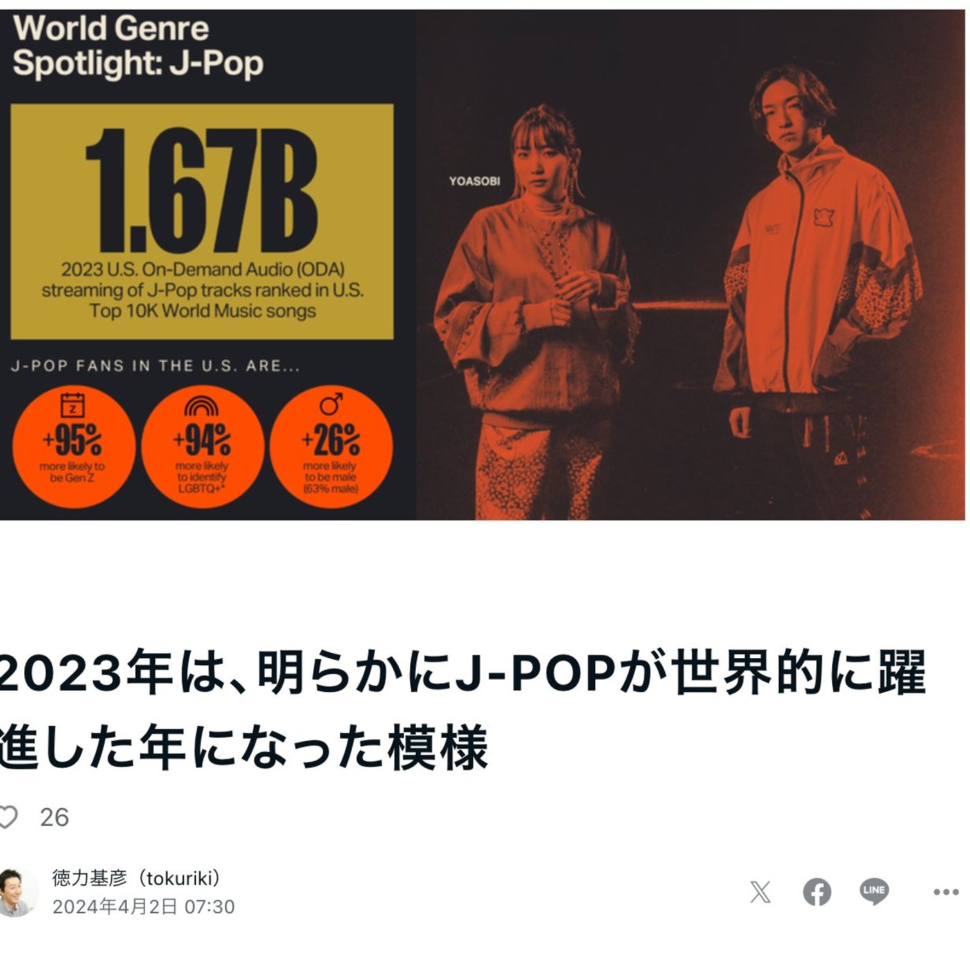 レポートの中に、ヨアソビーの2人の写真を使ったJ-POPワールドジャンル、スポットライトとしてJ-POPを取り上げられたページがあるんですよね。