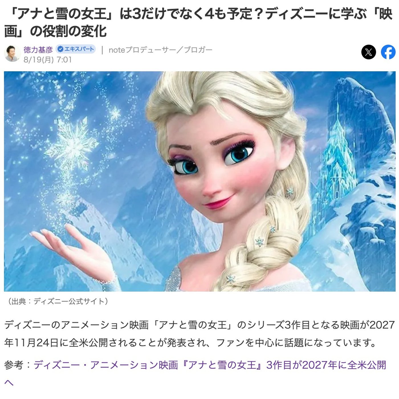 はい、こんにちは、徳力です。今日もですね、先日参加させていただきましたディズニーさんのイベントで、シリーズものがすごく多かったんですけれども、その中でも印象的だったのがフローズですね、アナと雪の女王が、イベント会場では3が発表されたんですけれども、実はもう4も発表されていて、去年の11月ですかね、