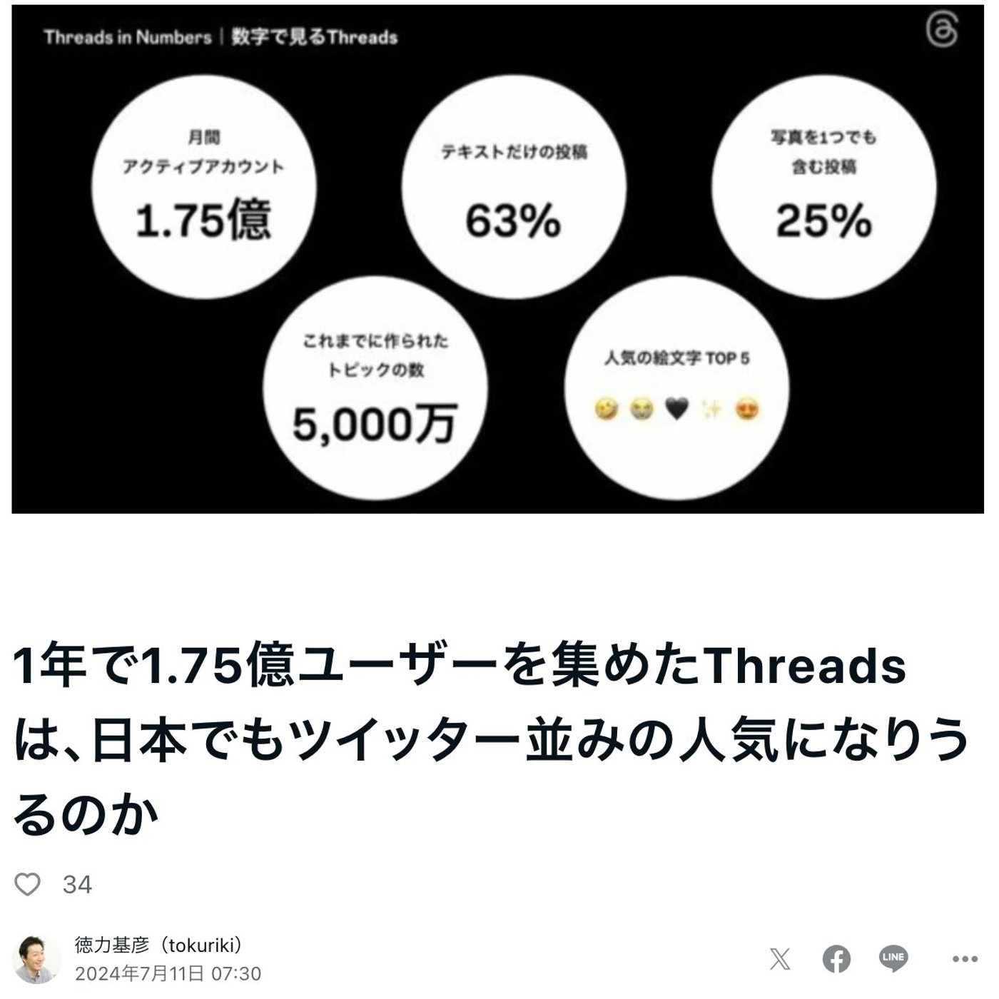 はい、こんにちは、徳力です。今日はですね、SNSのThreadsが1周年ということで、いろいろデータが出てきましたので、ご紹介したいと思います。