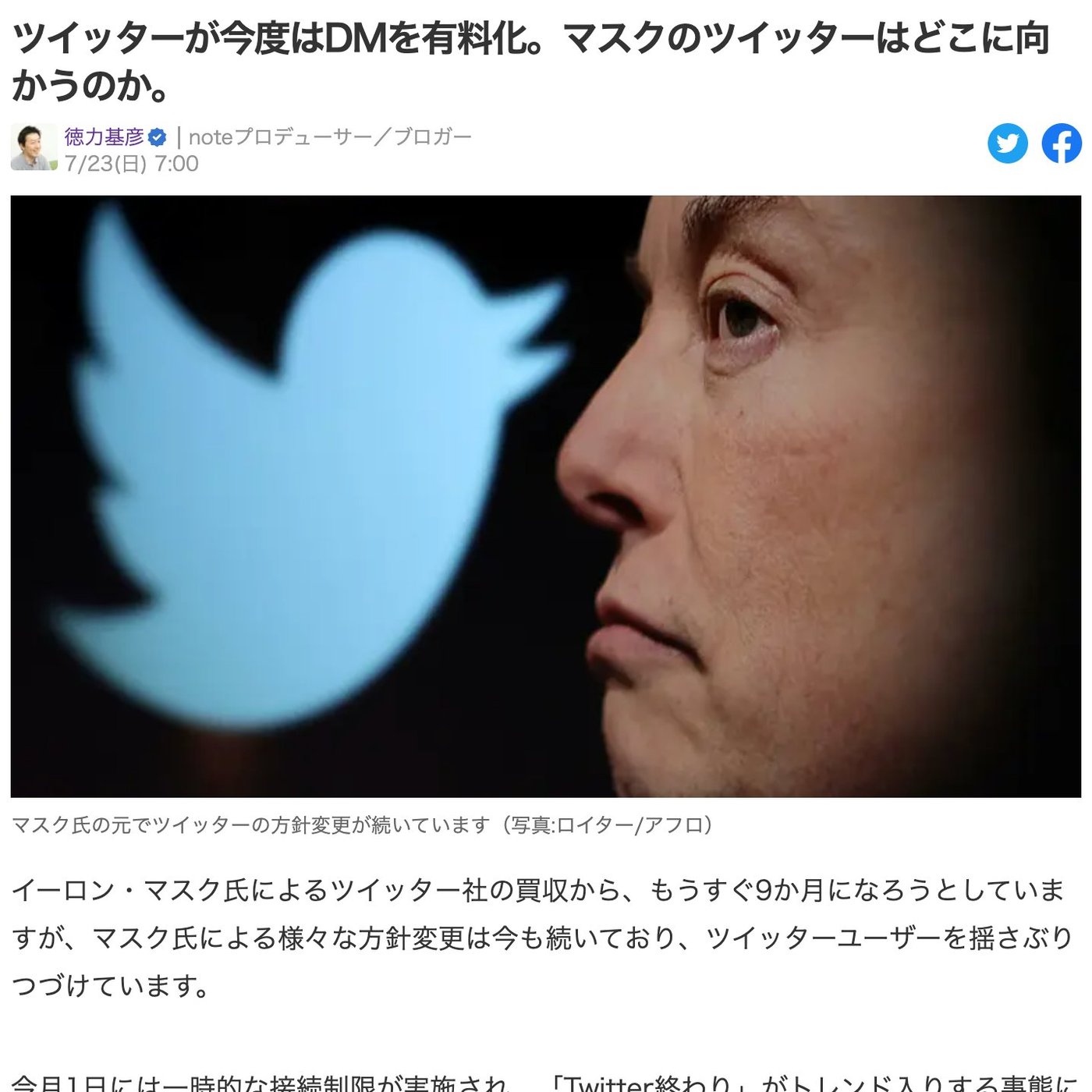 マスクさんが何でこのサービスをどんどん有料化していくのかっていう背景をYahoo!に書いたので、