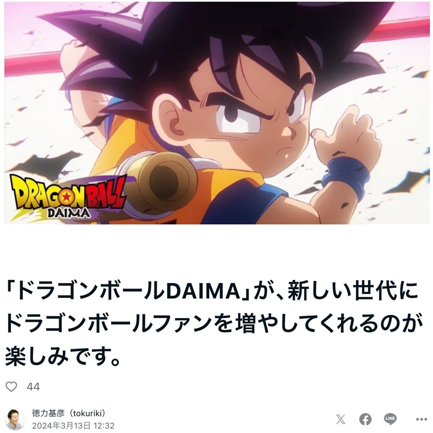 はい、こんにちは、徳力です。今日はですね、ドラゴンボールDAIMAの詳細ニュースが出ましたので、ちょっとご紹介したいと思います。