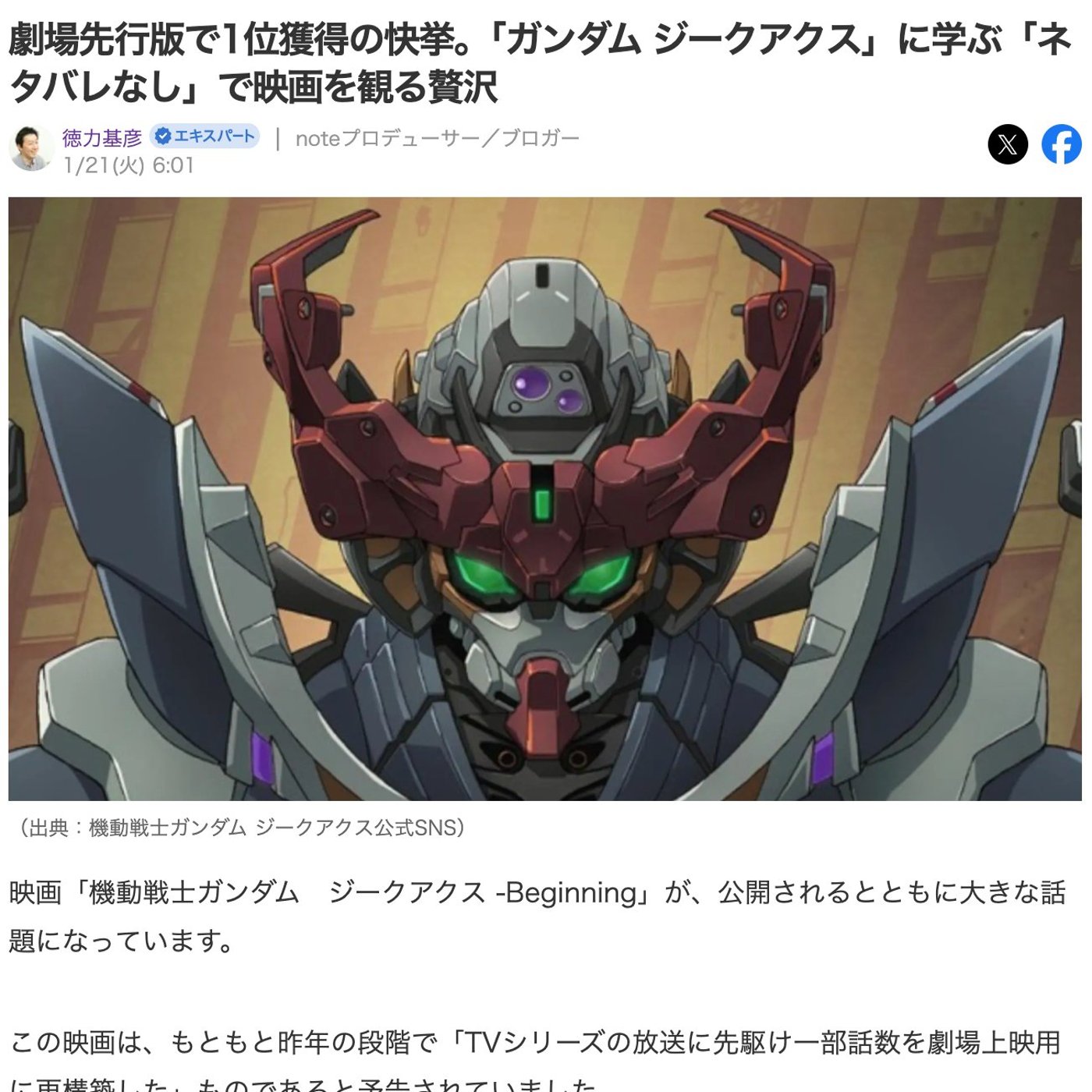 はい、こんにちは、徳力です。今日はですね、「機動戦士ガンダム ジークアクス」がなかなかすごかったので、